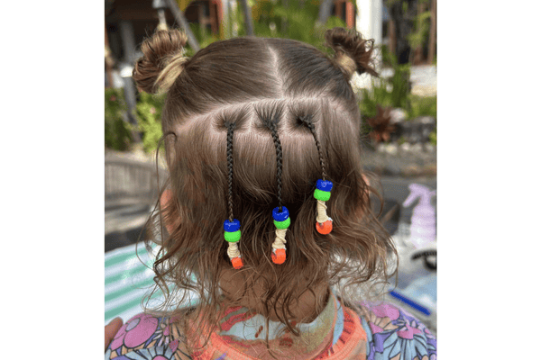 Our 7-year-old discovered that a full head of braids can take well over an hour (and feel like 3)... which, in holiday time, is equivalent to at least 15 missed waterslide runs. Still, the payoff when you strut back into school with the ultimate tropical hairstyle - totally worth it.